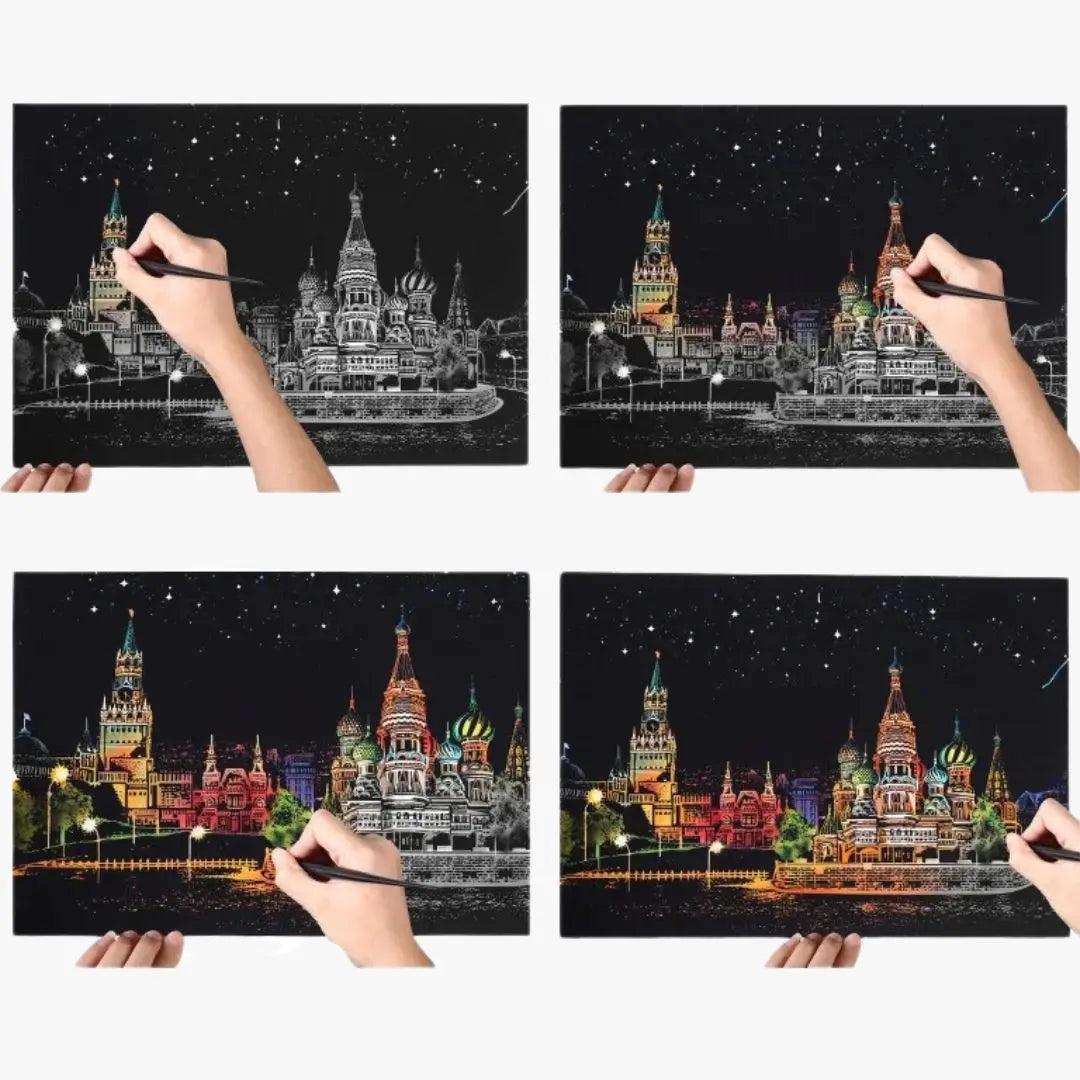 Chaque planche à gratter révèle des détails délicats et des couleurs éclatantes, transformant l'expérience en une pratique artistique zen , parfaite pour embellir votre intérieur ou offrir un cadeau raffiné et original.