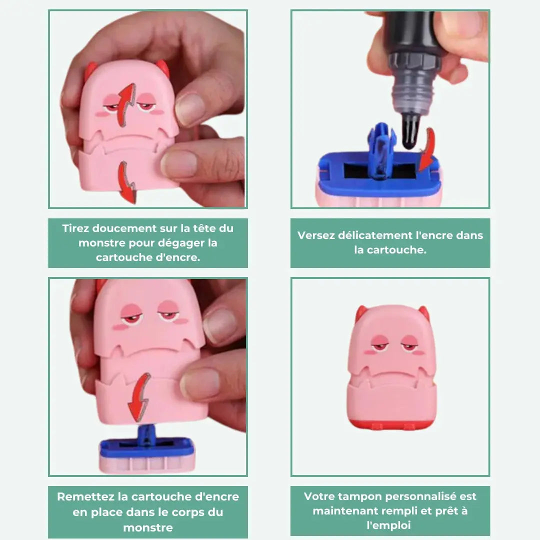 Conçu pour être simple et intuitif, ce kit de recharge pour tampon personnalisé s’utilise en quelques étapes sans sa